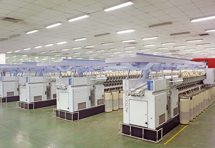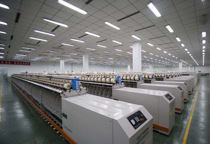 棉紡工廠以生產純棉高檔紗線為主,品種涵蓋精梳、氣流紡、緊密紡、賽絡紡、竹節紗、股線等,紗線品質達到烏斯特2007公報5%—25的水平,擁有從德國、瑞士、日本、意大利等國家引進的清梳聯、并條機、精梳機、自動絡筒機、氣流紡、倍捻機等紡紗設備及配套粗細聯、長機集體落紗、中央控制制冷空調、數據聯網中控系統等輔助設施,具有生產流程自動化程度高、用工少、成紗質量優良、環境好等特點,產品品質深受市場認可和贊譽。